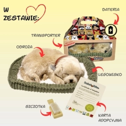 Adopteer een ademend Golden Retriever-puppy is een betoverende metgezel die kalmeert en vermaakt. Het slapende hondje met halsband en realistische details ziet er levensecht uit en het subtiele “op en neer gaan” van het buikje bij het ademen voelt natuurlijk en zacht. Er zit ook een comfortabel nestje bij zodat het puppy een eigen, veilig plekje heeft.