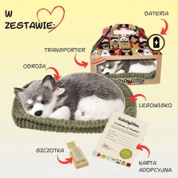 Het puppy is ideaal voor ontspanning in de avond, om mee te spelen en als een origineel interieuraccessoire. Het maakt iedereen blij die verlangt naar een schattig ‘huisdiertje’ zonder zorgen – leg het gewoon in zijn mandje en geniet van zijn zachte aanwezigheid.