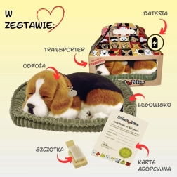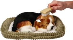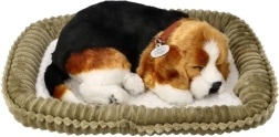Het ademende beagle-puppy Perfect Petzzz is een pluchen speeltje dat is ontworpen om een slapende hond zo waarheidsgetrouw mogelijk na te bootsen. Het rijst en daalt zachtjes alsof het ademt, en dankzij de realistische vachtkleuren en het zachte mandje wordt het een favoriet accent in zowel de kinderkamer als de woonkamer.