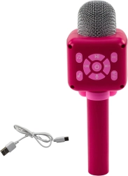 Deze roze draadloze microfoon is ideaal voor jonge zangers. De bedieningsknoppen zijn intuïtief – je past eenvoudig de volume aan, wisselt nummers, start het opnemen of afspelen. Werkt zelfstandig én in Bluetooth-modus, zodat je hem kunt verbinden met je telefoon of tablet en meezingen met je favoriete tracks.
