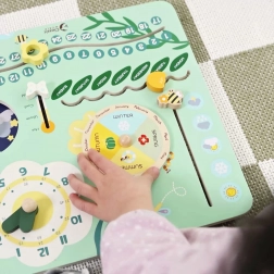 Deze kleurrijke en overzichtelijke houten kalender helpt kinderen de basis van tijd eenvoudig te begrijpen en kennis te maken met Engelse woordjes. Ideaal voor thuisonderwijs en gebruik op de kleuterschool: