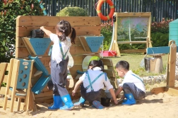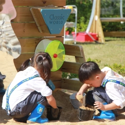 - Veelzijdig zintuiglijk spel: water en zand, trechters, goten en molen.