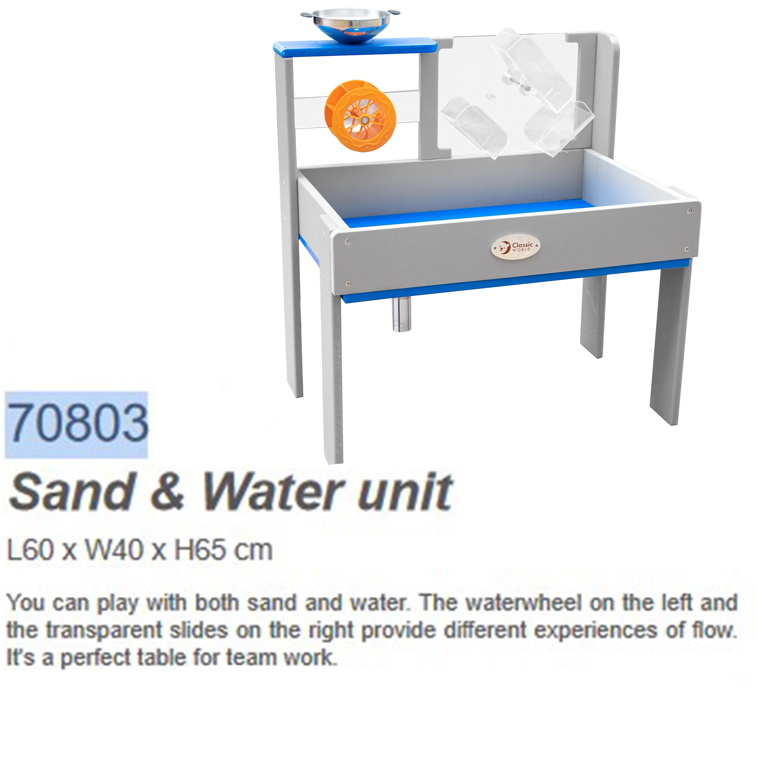 De water- en zandtafel van Classic World brengt water- en zandplezier voor alle kinderen. Dit innovatieve en veilige product is ideaal voor gebruik in de tuin, op speelplaatsen of in educatieve instellingen.