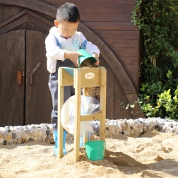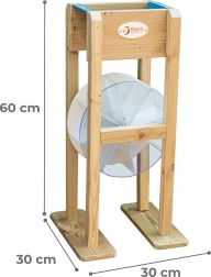 Giet zand of water in de trechter en zie hoe het blauwe rad gaat draaien. Kinderen begrijpen intuïtief het principe van beweging en energie en ontwikkelen logisch denken.