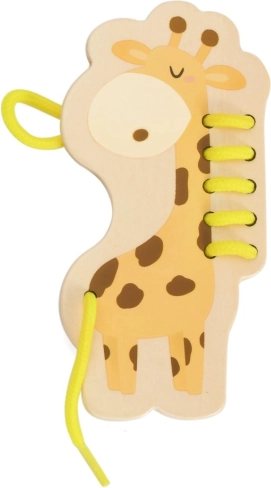 Met deze mooie set houten rijgdiertjes oefenen kinderen hun greep, geduld en precisie. Door de veter door de voorgeboorde gaatjes in de dieren te rijgen, versterken ze vingers en pols en ontwikkelen ze spelenderwijs de oog-handcoördinatie. Het spel is stil, rustgevend en ideaal voor onderweg en thuis.