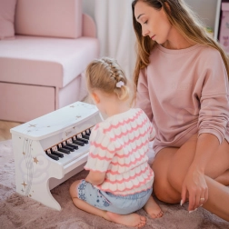 De CLASSIC WORLD kinderpiano is zorgvuldig gemaakt van hout en gelakt met een niet-giftige afwerking in het wit. De realistische uitvoering en zuivere toon benaderen een echte muzikale ervaring en stimuleren kinderen om melodie en ritme te ontdekken.