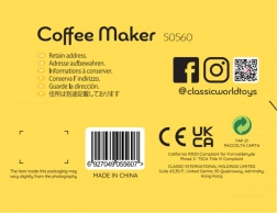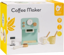 Stijlvolle houten koffiemachine van Classic World brengt veel plezier en leerzame momenten in de kinderk keuken. De set van 7 delen biedt realistische bewegende onderdelen, draaibare knoppen met geluid en een veilige afwerking van natuurlijk hout. Ideaal voor rollenspel, de ontwikkeling van fijne motoriek en creativiteit bij kinderen vanaf 18 maanden.