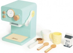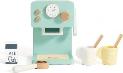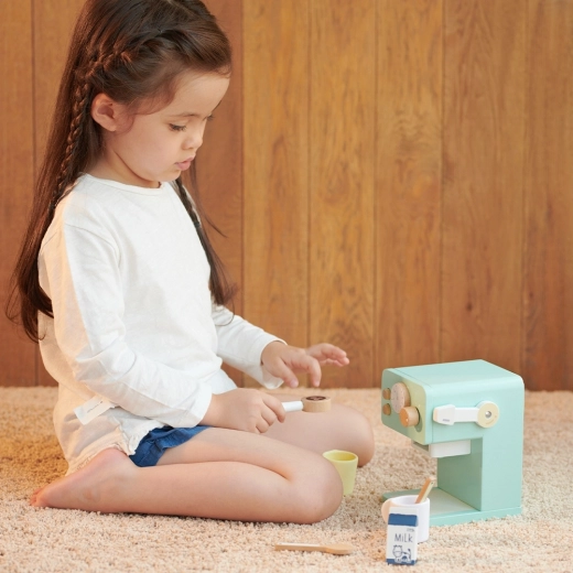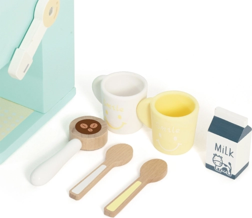 Geef kleine barista’s een authentieke koffie-ervaring. Deze houten koffiemachine in turquoise design oogt realistisch dankzij de hendelbediening en de draaiknop met mechanisch geluid. De zorgvuldige afwerking zonder scherpe randen en het hoogwaardige natuurlijke hout garanderen duurzaamheid en veiligheid.