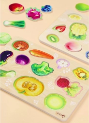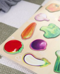 De houten Montessori-puzzel met groenten is een ideale keuze als eerste educatief speelgoed. Kleurrijke en overzichtelijke illustraties stimuleren kinderen om de verschillende groentesoorten te benoemen en ondersteunen op natuurlijke wijze de interesse in gezonde voeding. De grootte van de stukjes is aangepast aan kleine kinderhanden.