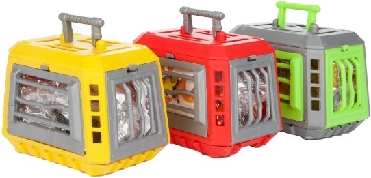 De praktische kooi dient als opbergbox en als aantrekkelijk speelelement. Het product wordt geleverd in een mix van soorten, waardoor elke set kan verrassen met een andere uitstraling van de dinosaurus.