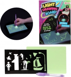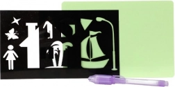 Deze set bevat een schrijfplaat en een pen met onzichtbare inkt, ideaal voor het schrijven van geheime briefjes. De inkt is onder normale lichtomstandigheden onzichtbaar, maar begint in het donker te gloeien, wat unieke en verrassende ervaringen voor kinderen garandeert. In de verpakking zitten ook sjablonen voor nog meer plezier en inspiratie.