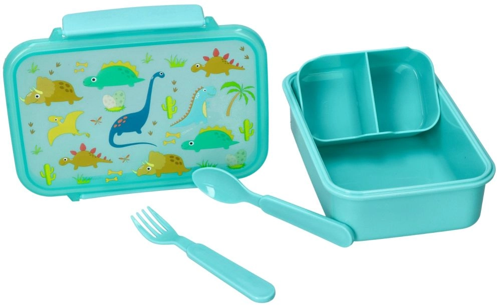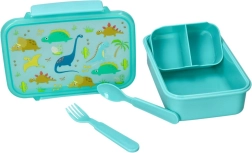 Praktische lunchbox met dinosaurusmotief, ideaal voor school en uitstapjes. Bevat bestek – vork en lepel, is geschikt voor de vriezer en kan zonder deksel in de magnetron worden verwarmd tot 100 °C. Compacte afmetingen 18 × 13 × 6 cm passen in schooltas en rugzak.
