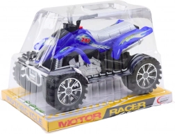 De blauwe terreinquad voor kinderen biedt een realistische look, een sportief design en een frictie-aandrijving (opwindmechanisme) zonder batterijen. Dankzij de grote profielbanden en de duurzame kunststof constructie is hij ideaal voor actievol rijden binnen en buiten, en stimuleert hij fijne motoriek, verbeeldingskracht en coördinatie.