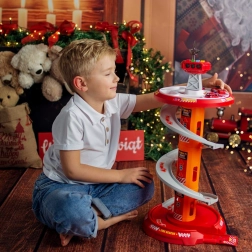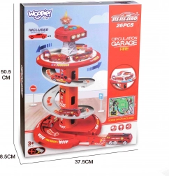 Het leuke spiraalvormige parkeerterrein voor kleine brandweerlieden van het merk WOOPIE biedt een meerniveaubaan met een snelle afdaling, licht- en geluidseffecten en 3 brandweerautootjes. Kinderen vanaf 3 jaar genieten van actievolle ritten op de ronde ramp, van reddingsspel en rijden over de meegeleverde wegenmat met verkeersborden.