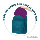 De compacte kunststof behuizing is gemakkelijk te sluiten en mee te nemen. Alle blokjes en de dobbelsteen blijven veilig binnenin – ideaal voor onderweg.