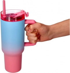 Ontdek het comfort van een grote thermosbeker met rietje die een ruime inhoud van 1200 ml combineert met een licht en praktisch ontwerp. Dankzij het deksel met rietje drink je comfortabel onderweg, terwijl het comfortabele handvat het dragen vergemakkelijkt. Het trendy blauw‑roze ombré‑design geeft elke dag extra flair.