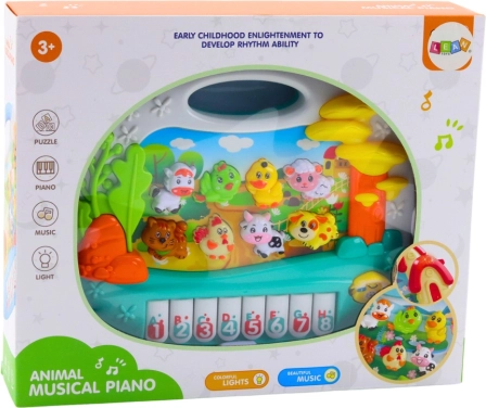 Een kleurrijk interactief pianino introduceert kinderen in de wereld van muziek en ritme. Het biedt het leren van dieren, kleuren en cijfers, realistische dierengeluiden en vrolijke melodieën. Het heeft 8 toetsen, 8 dierknoppen en een speciale telefoonknop voor verschillende spelmodi. De veilige, duurzame constructie en het praktische handvat zorgen voor comfortabel gebruik thuis en onderweg.