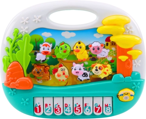 Ontdek een speelse manier om gehoor, zicht en fijne motoriek te ontwikkelen. Het interactieve educatieve pianino stimuleert natuurlijk leren door spel – kinderen maken kennis met dierennamen, herkennen kleuren, leren tellen en ontwikkelen gevoel voor ritme. Levendige kleuren, vrolijke melodieën en authentieke dierengeluiden houden ook de allerkleinsten geboeid.