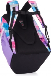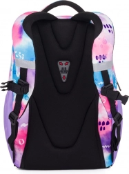 Oxybag Watercolor is een praktische rugzak bedoeld voor school- en reisdoeleinden. De driedelige indeling biedt ruimte voor een laptop, boeken en andere benodigdheden: