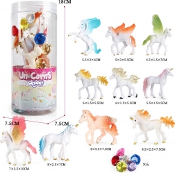 Deze betoverende set met eenhoornfiguren van WOOPIE bezorgt kinderen urenlang plezier en fantasie. Figuren in diverse poses, met bontgekleurde manen, staarten en vleugels, nodigen uit tot het maken van eigen verhalen, terwijl de “edelstenen” het spel extra glans geven. Dankzij de hoogwaardige afwerking zijn ze ideaal voor zelfstandig spel én als aanvulling op de kinderkamer.