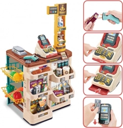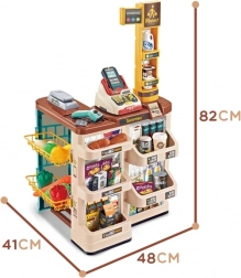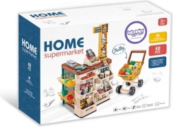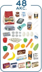In de set zit ook een winkelwagentje/mandje voor spel met z’n tweeën, papieren geld, een betaalkaart en diverse levensmiddelen (fruit, groenten, dranken, zuivelproducten enz.). Het esthetische design past in elk interieur en de kleurrijke geschenkverpakking is perfect voor elke gelegenheid.
