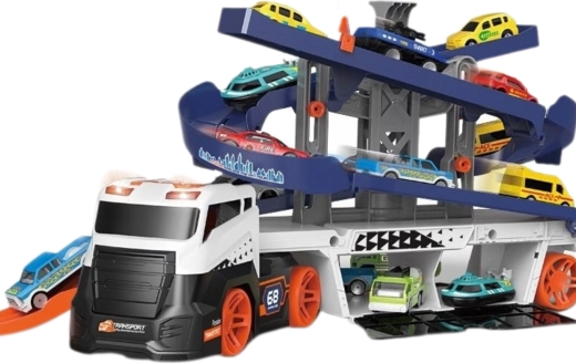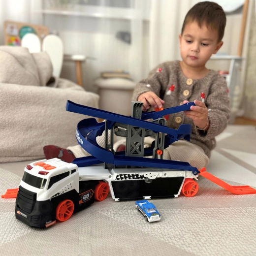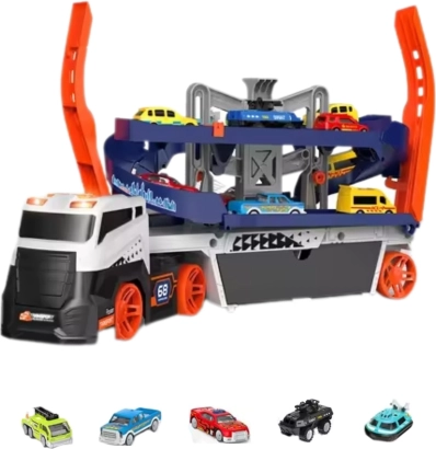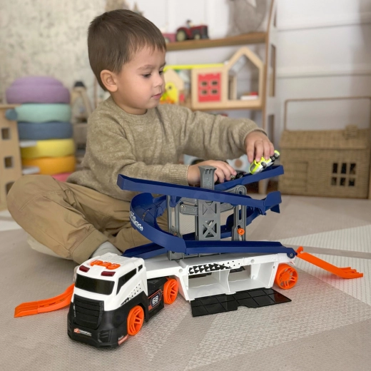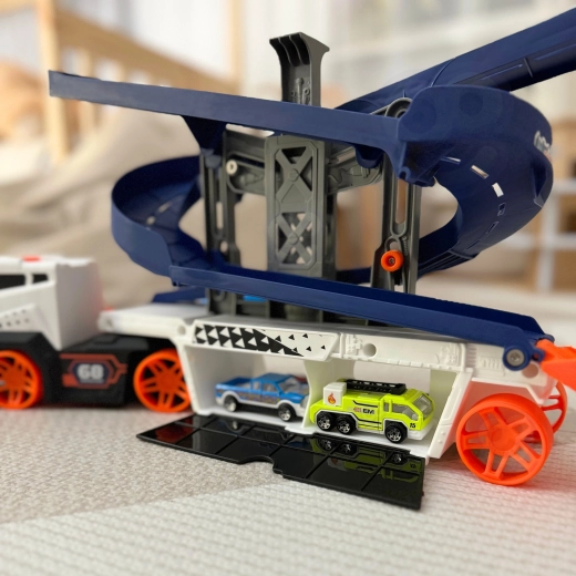 - 3-in-1: transporter, autoracebaan, leren – spelen, racen en leren in één.