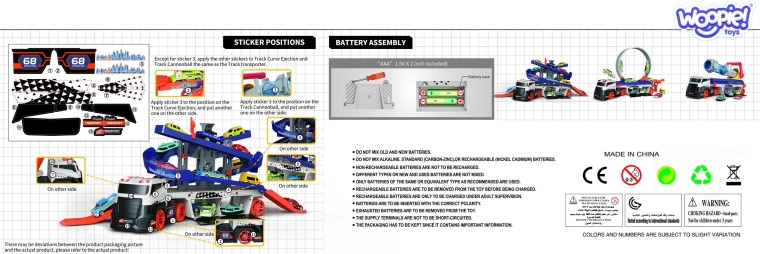 De interactieve TIR van het merk WOOPIE combineert een autoracebaan, transporter en educatieve functies in één dynamische set. Kinderen genieten van realistische licht- en geluidseffecten, terwijl ze op speelse wijze Engelse letters en cijfers ontdekken. Openende zijkleppen en het bovenste parkeerplatform met startbanen voegen actie en fantasie toe aan het spel.