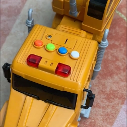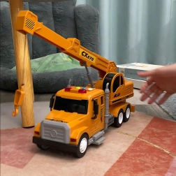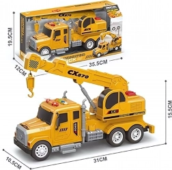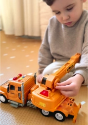 De WOOPIE 1:14 kraanwagen is het ideale speelgoed voor kleine bouwers. Vier gekleurde knoppen op het dak van de cabine activeren lichten en diverse geluiden (motorstart, claxon, rijgeluiden), terwijl de vrijloop met hulpaandrijving ervoor zorgt dat de wagen na een duwtje uit zichzelf doorrijdt.