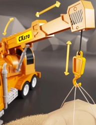 De grootste attractie is de bewegende kraangiek met hoogte- en lengteregeling en een draaibare lier voor het oprollen en afrollen van het touw met haak. Realistische proporties in schaal 1:14 en het gedetailleerde design stimuleren de ontwikkeling van de fijne motoriek, fantasie en rollenspel tijdens het bouwen en het hijsen van lading.