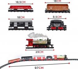 De set bevat 29 onderdelen: een locomotief, kolenwagen en wagons, waarmee kinderen hun eigen ronde kunnen bouwen met afmetingen van 170 × 82 cm. De totale lengte van de trein is ca. 94 cm, de lengte van de baan is 460 cm. Een ideaal cadeau dat fantasie en manuele vaardigheden stimuleert.