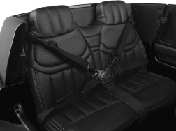Veiligheid en controle staan voorop: 5-puntsgordels, soepele start, elektrische rem bij loslaten van het gas en een afgedekte modusschakelaar zodat het kind niet per ongeluk van afstandsbediening naar handmatig sturen overschakelt.