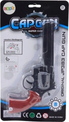 Ontdek de klassieke capsule-revolver die zowel kleine als grote westernfans zal bekoren. Dankzij de draaibare trommel oogt hij overtuigend en kan hij met of zonder capsules worden gebruikt – als speelgoed, rekwisiet of onderdeel van een kostuum. De zwarte behuizing met rood handvat zorgt voor een authentieke uitstraling en comfortabel houvast.