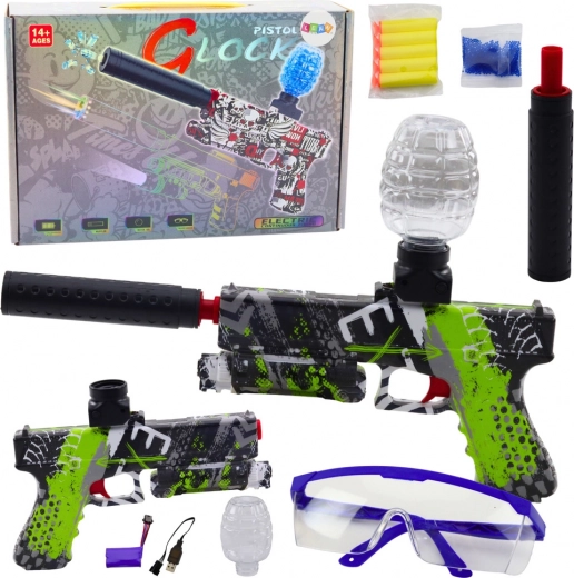 Pistool voor gelballetjes en foamdarts is de ideale keuze voor liefhebbers van dynamisch plezier en competitie. Dit model, geïnspireerd door de iconische Glock, zorgt voor realistische ervaringen en nauwkeurige schoten dankzij volledig automatisch schieten - je hoeft alleen de trekker over te halen en het pistool schiet snel. Het pistool wordt aangedreven door een accu, wat langdurig en ononderbroken spel garandeert.