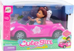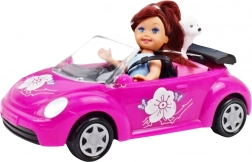 De schattige pop neemt plaats in de stijlvolle roze cabrio met een open ontwerp, waardoor het in- en uitnemen van het figuurtje gemakkelijk is. Dankzij de beweegbare armen en benen zet je haar eenvoudig achter het stuur en ga je op pad met de trouwe hond op de achterbank.