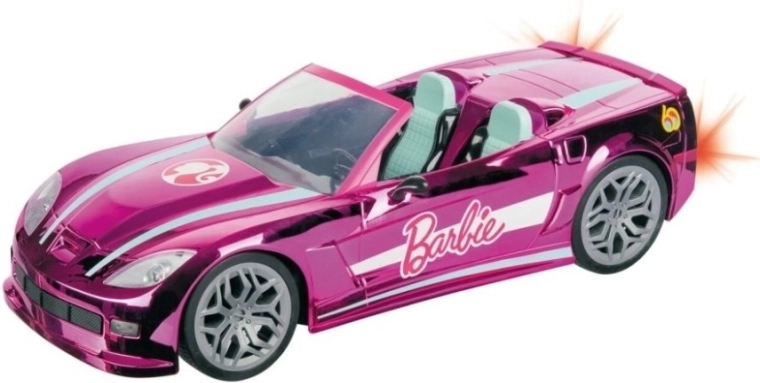 Stijlvolle roze RC-auto voor Barbie-poppen met volledige afstandsbediening, 2,4 GHz-frequentie, een lengte van ca. 40 cm en plaats voor twee poppen. Het geweldige design, brandende voor- en achterlichten en de eenvoudige bediening zorgen voor uren creatief speelplezier. (Poppen worden afzonderlijk verkocht.)