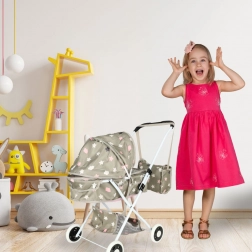 Stijlvolle diepe kinderwagen voor poppen zal elke jonge verzorger plezieren. Gemaakt met aandacht voor een realistisch ontwerp en functionaliteit, wat de fantasie en creativiteit van kinderen tijdens het spelen stimuleert.