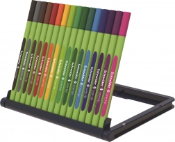 De ergonomische, rubberen driekantige behuizing van bioplastic biedt comfort, ook bij langer schrijven. Elke fineliner heeft een dop en eindstuk in de kleur van de inkt, zodat u direct de juiste kleur kiest.