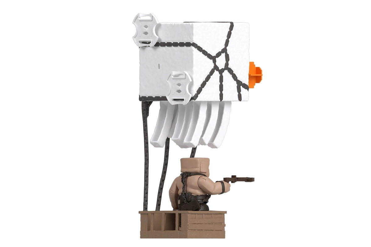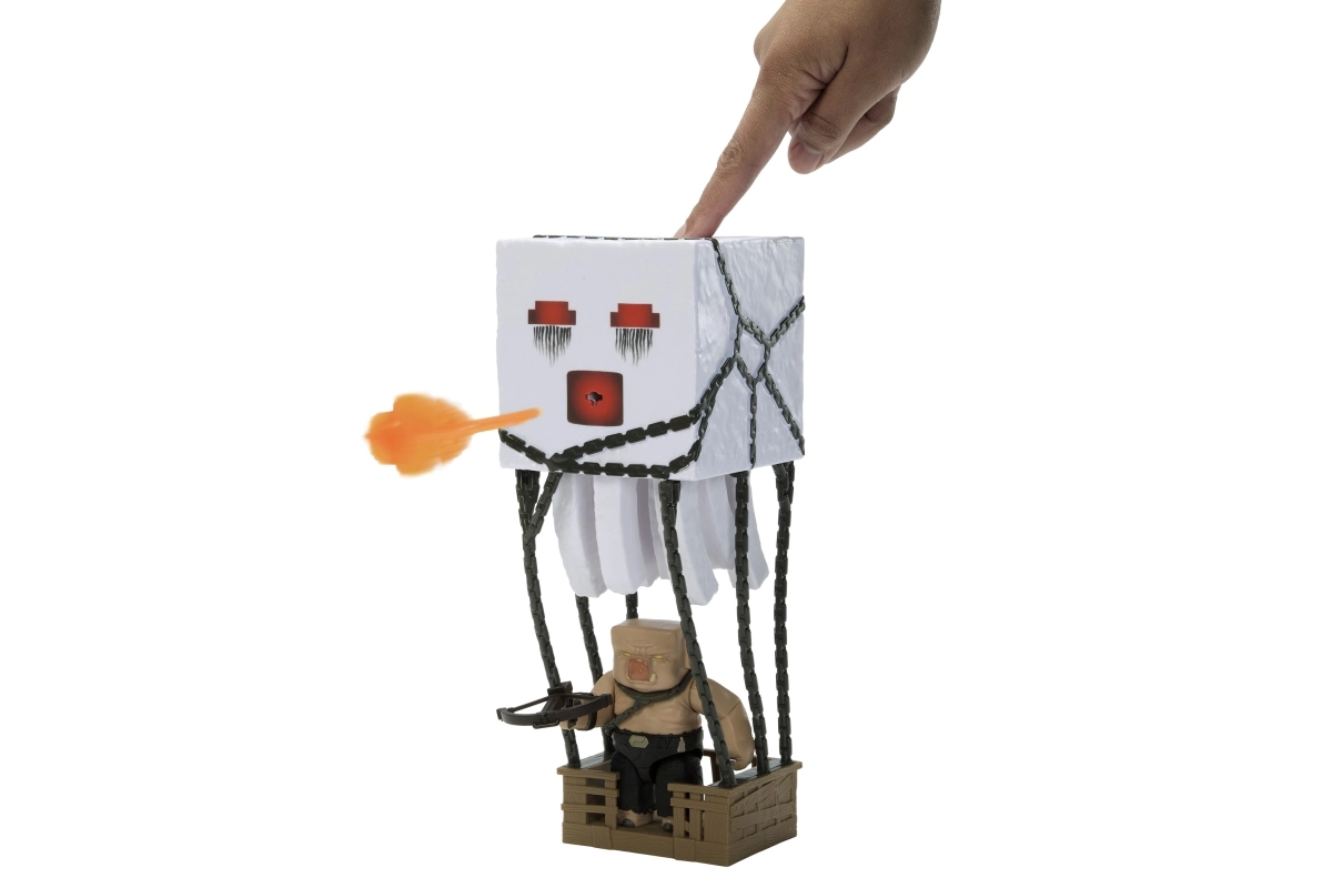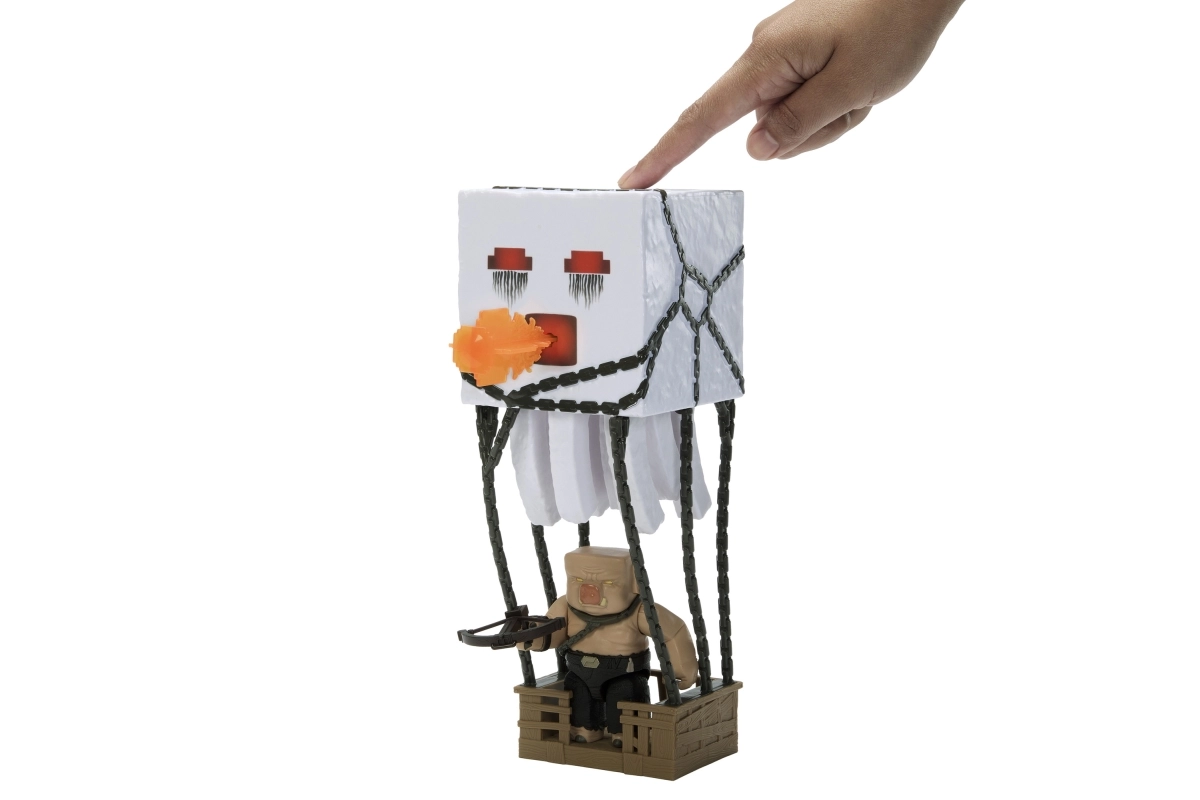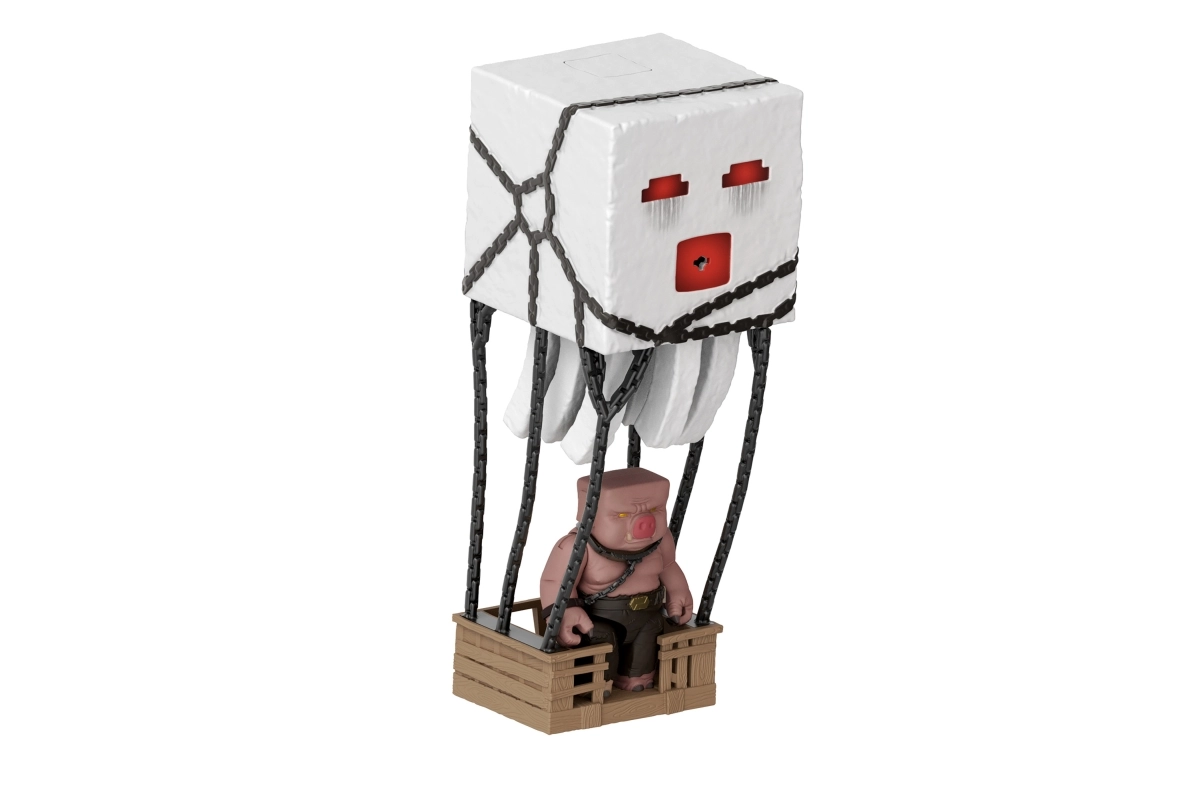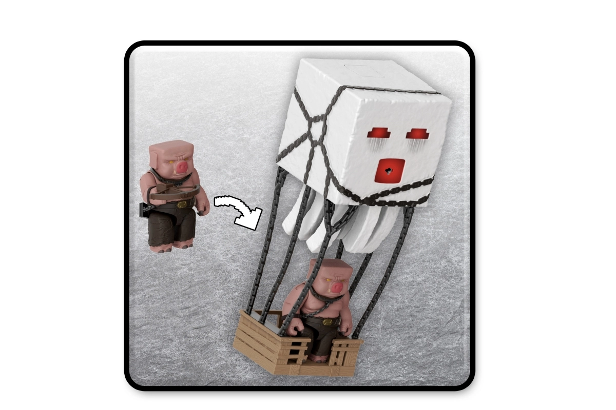 Beleef het Minecraft-filmavontuur tot leven. De interactieve Ghast heeft een knop aan de bovenkant die lichten, geluidseffecten activeert en een oranje projectiel uit de mond afvuurt. Dankzij de kettingen en de hangende “kooi” kun je eenvoudig scènes nabootsen waarin Piglins Ghasts inzetten voor aanvallen.
