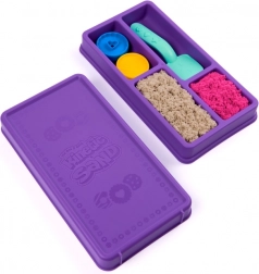 Het zand is gemaakt van natuurlijk materiaal, blijft goed samen en is makkelijk op te ruimen. Het droogt niet uit, zodat je steeds weer kunt blijven creëren. De afsluitbare paarse case houdt zand en tools overzichtelijk bij elkaar – ideaal voor op reis en in de kinderkamer.