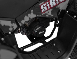 De luchtgekoelde eencilinder tweetaktmotor levert vlotte acceleratie en eenvoudig onderhoud. Voor de veiligheid is er een veiligheidskoord (lanyard kill switch) dat de motor onmiddellijk uitschakelt wanneer het wordt losgetrokken, en effectieve schijfremmen op beide assen. De kettingaandrijving is betrouwbaar en eenvoudig te onderhouden.