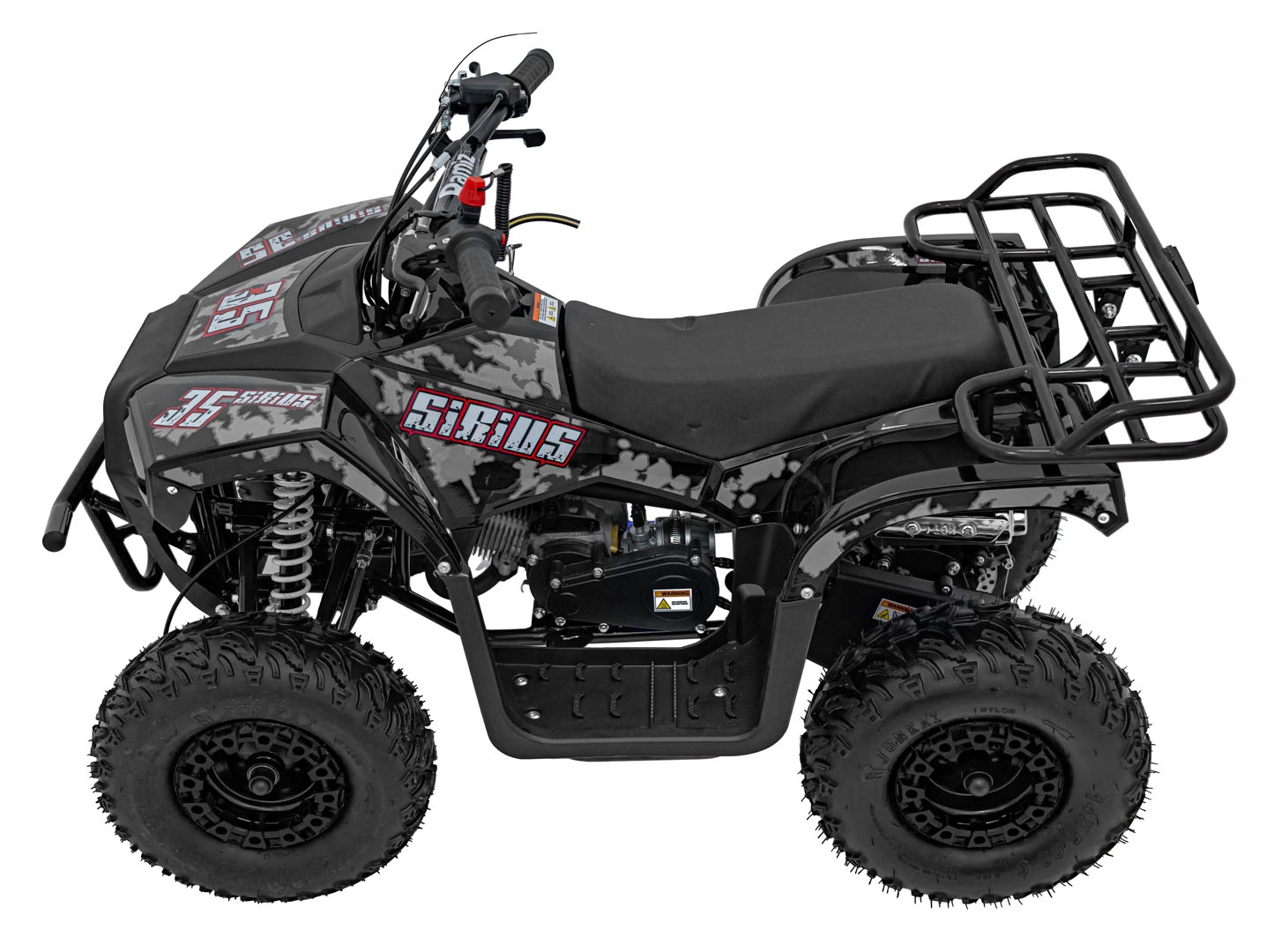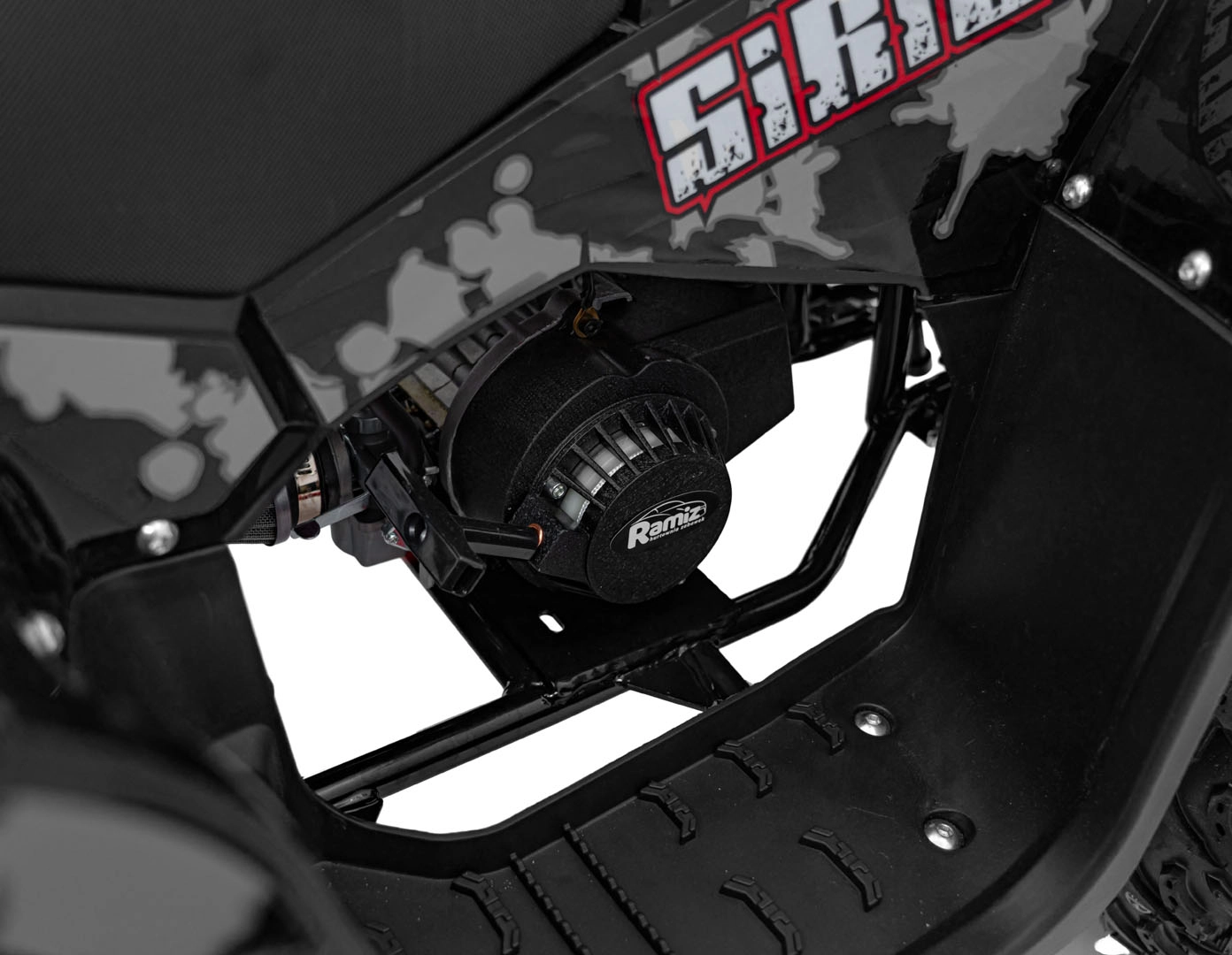 Het model SIRIUS 49 cc is een ideale keuze voor jonge rijders die veilig willen kennismaken met de offroad-wereld. Het stevige, poedergecoate frame, versterkte componenten en kwalitatieve kunststofdelen zorgen voor hoge duurzaamheid. De tractie wordt verzorgd door opblaasbare banden met uitgesproken profiel, terwijl de dubbele voor- en enkele achterdemper oneffenheden doeltreffend absorberen.