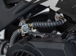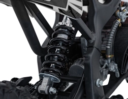 Schijfremmen op beide wielen, een voorste telescoop en een achterdemper zorgen voor controle, comfort en stabiliteit op oneffen terrein.