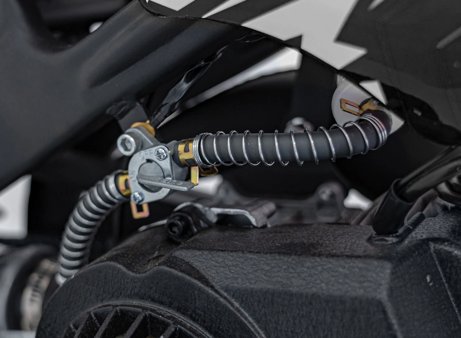 Tweetakt eencilinder met luchtkoeling en handstarter biedt betrouwbare prestaties en eenvoudig onderhoud – ideaal voor jonge rijders.