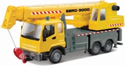 De bouwkraanwagen is tot in detail afgewerkt met realistische elementen zoals lichten, wielen en waarschuwingsstrepen.