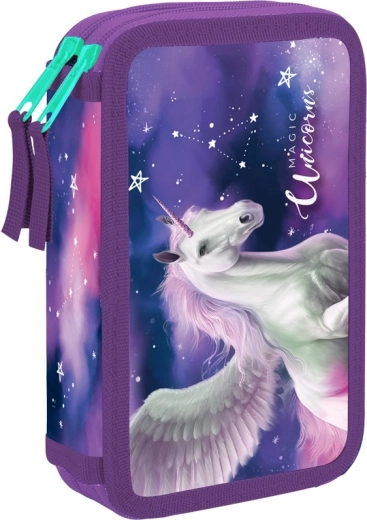 Twee lagen schooletui Pegas biedt een ideale oplossing voor het organiseren van alle benodigde schoolbenodigdheden. Het is uitgerust met twee hoofdvakken met rits die voldoende ruimte bieden voor uw schrijfmaterialen.