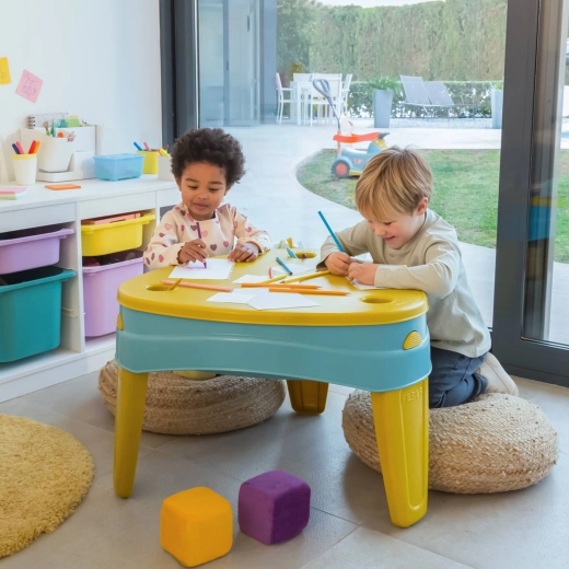 - 4-in-1 gebruik: waterspel, zandbak, tekentafel, picknicktafel