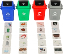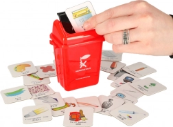 Ontdek een slimme en speelse weg naar ecologie. Dit educatieve spel leert kinderen de principes van afvalscheiding met behulp van vier gekleurde bakken en 108 geïllustreerde kaarten met alledaagse voorwerpen. Leren is natuurlijk, leuk en motiverend – wie plaatst het juiste afval het snelst in de juiste bak?