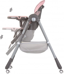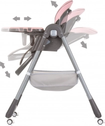 Praktische en comfortabele kinderstoel voor kinderen tot 15 kg met extra uitrusting voor veilig en rustig eten. Biedt 4 standen rugleuning, 7 hoogteposities van de zitting, een verstelbare voetensteun en zachte ECO-leer bekleding voor eenvoudig onderhoud. Voor de veiligheid zorgen 5-punts gordels en een stabiele constructie met wielen voor eenvoudig verplaatsen. Inclusief dubbel dienblad, speelboog met speeltjes en opbergmand.