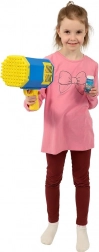 Dit bellenblaaspistool voor kinderen verandert elke middag in een kleurrijke show. Het compacte formaat van 22 cm, de ergonomische greep en de lichte kunststof constructie zorgen voor comfortabel vasthouden, ook voor jongere kinderen. De meerstraals kop creëert een stortvloed aan glinsterende bellen die zowel klein als groot zullen verrassen.