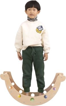 De regenboogkleurige houten rocker van Viga inspireert kinderen tot actief spel en natuurlijke ontwikkeling. Hij helpt bij het trainen van evenwicht, coördinatie en grove motoriek, en biedt tegelijk eindeloze mogelijkheden voor open spel volgens de principes van Montessori.